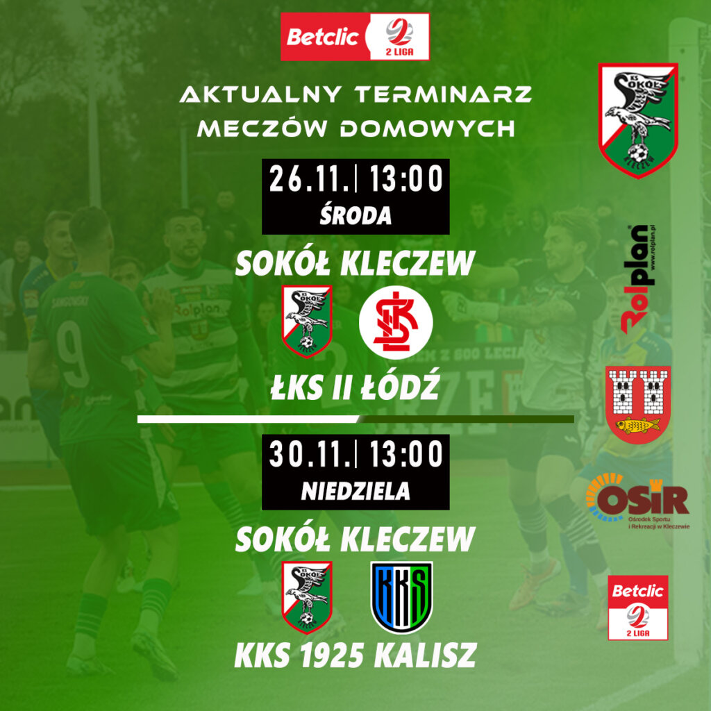 Wczoraj informowaliśmy o zmianie terminu meczu Sokoła z ŁKS II Łódź z 15 listopada na 26 listopada.