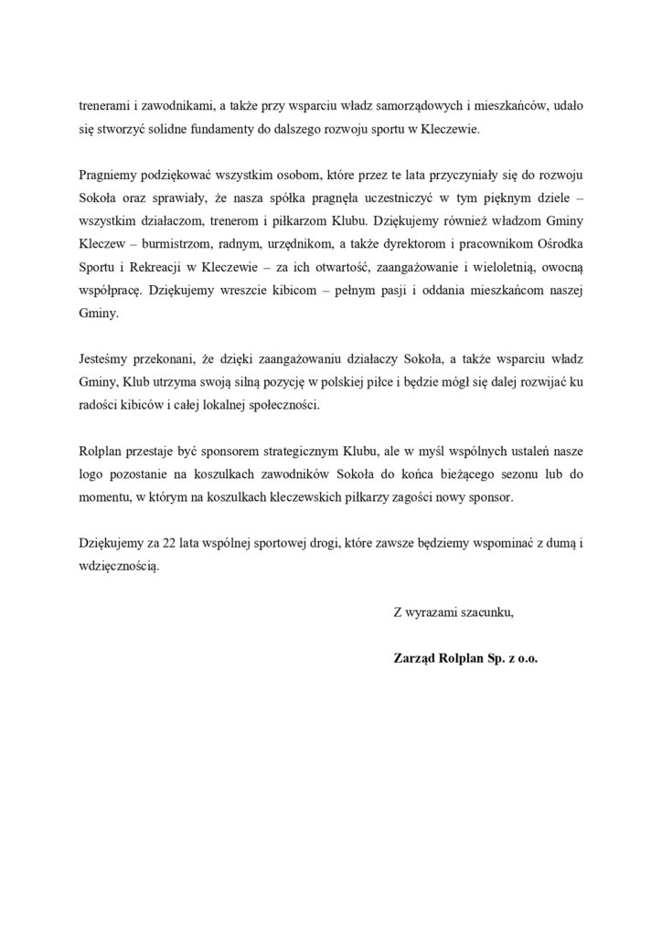 Oświadczenie sponsora strategicznego – firmy Rolplan