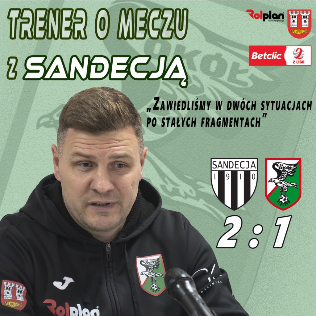 Trener przyznał, że początek meczu nie wyglądał tak, jak sobie to wyobrażał. – Pierwsze 20 minut było obiecujące, później oddaliśmy inicjatywę Sokołowi. Za mało było pressingu, zbyt łatwo traciliśmy piłkę, a przeciwnik swobodnie rozgrywał akcje.