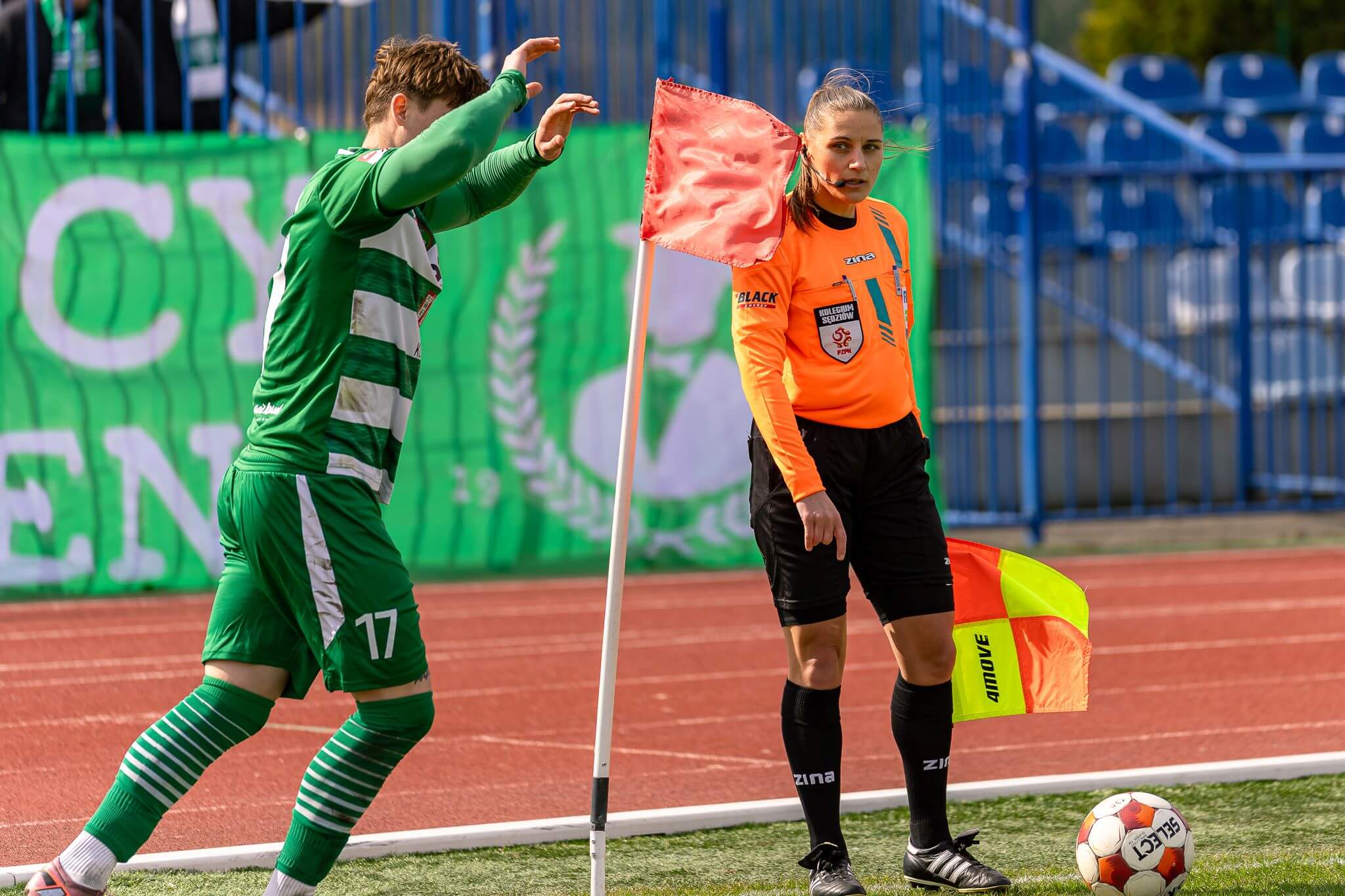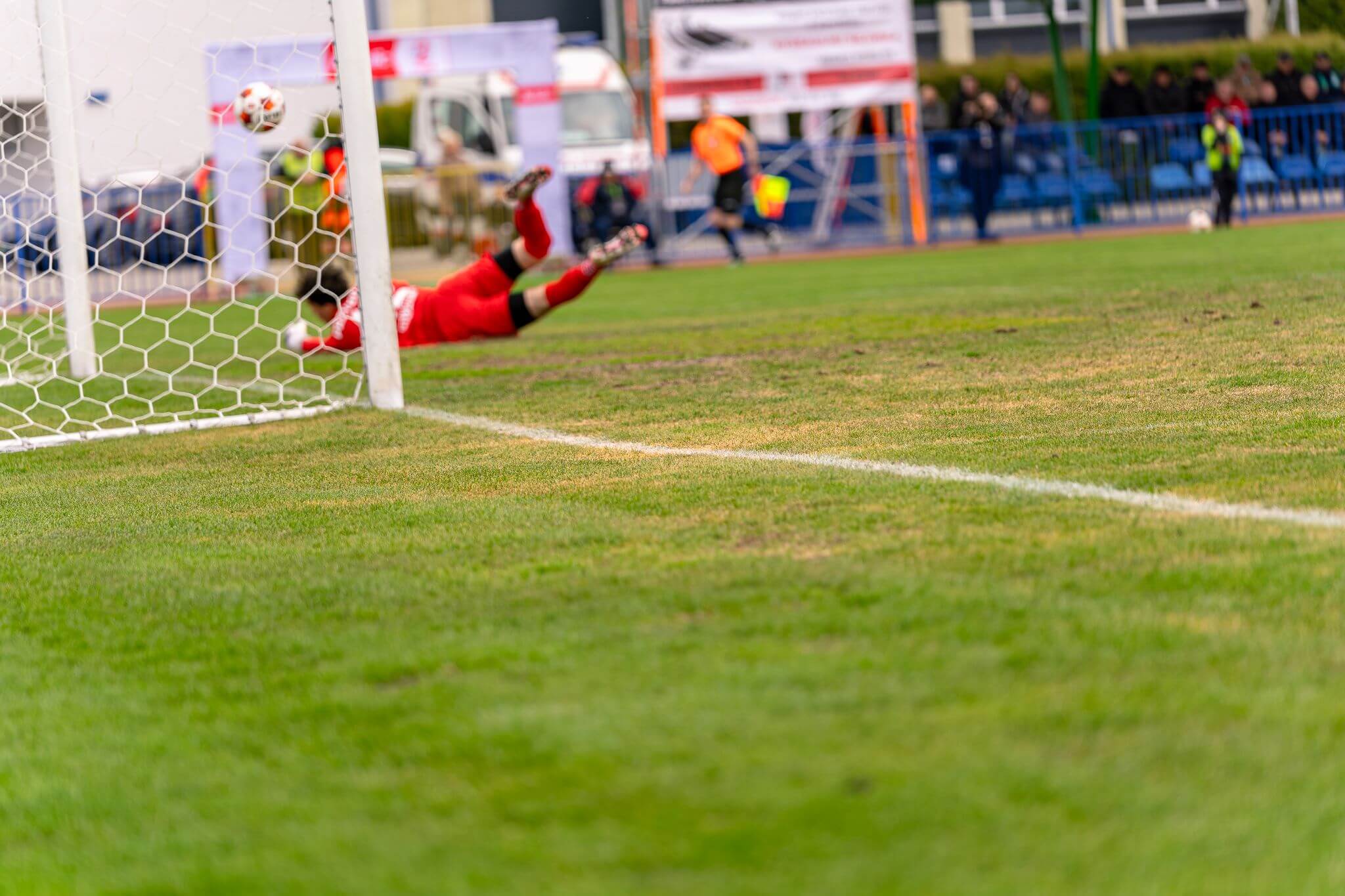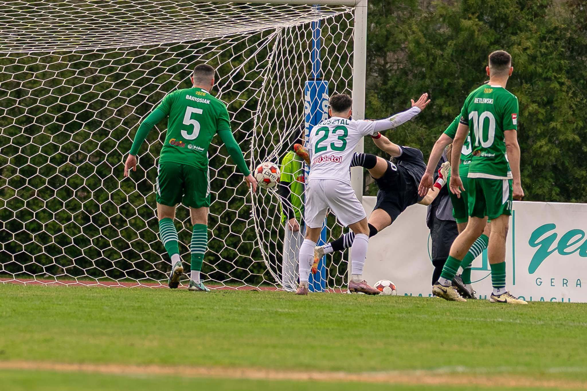 Gospodarze odpowiedzieli jeszcze przed przerwą. Po faulu na Bartoszu Szczepankiewiczu (zastąpił kontuzjowanego Daniela Dudzińskiego) arbiter podyktował rzut wolny. W efektowny sposób wykończył go Wiktor Smoliński. Po jego uderzeniu piłka odbiła się od prawego słupka, wyszła w pole, przeleciała wzdłuż bramki, by tuż przy drugim słupku odbić się od kępki trawy i wpaść do siatki.