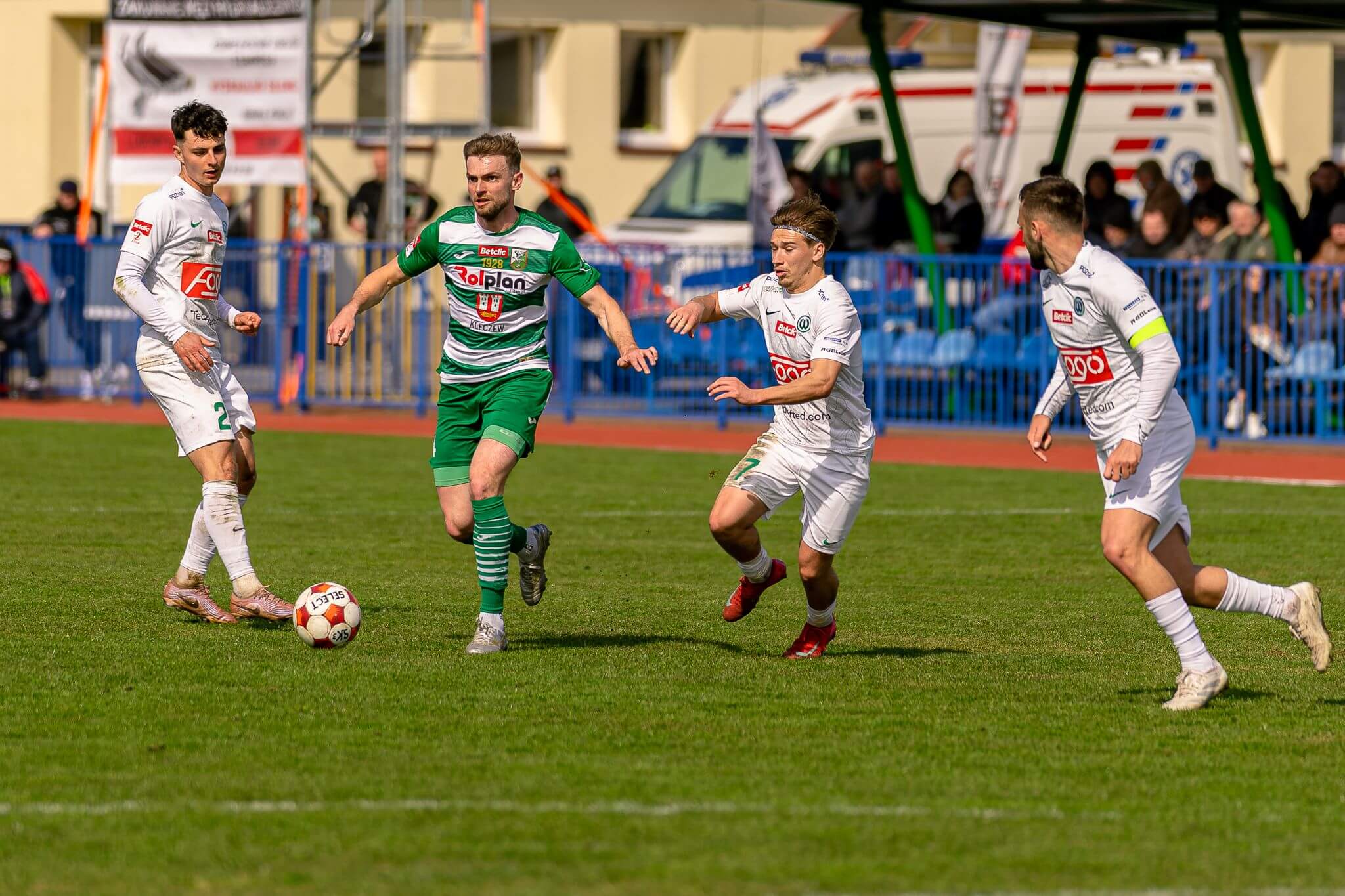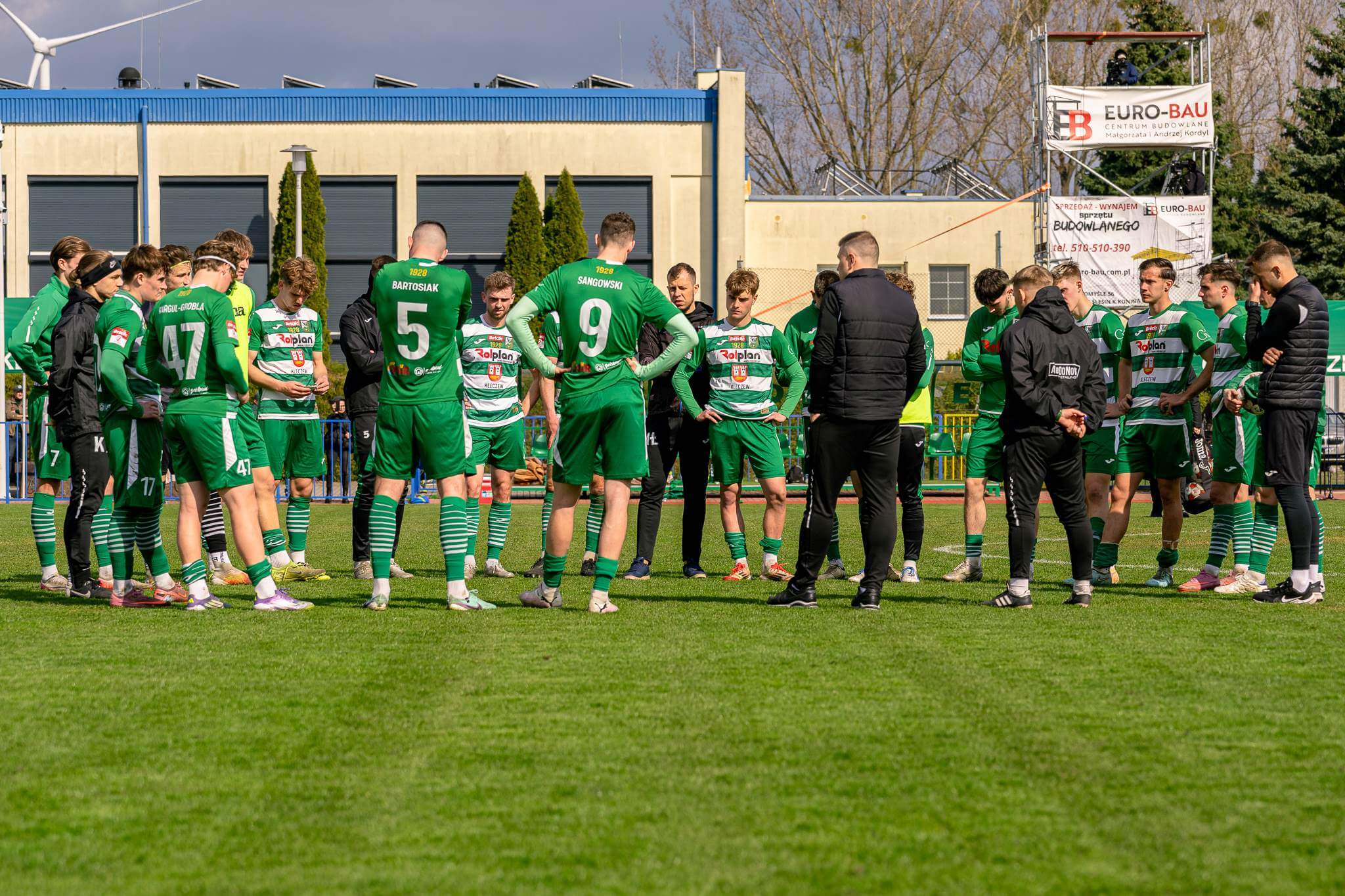 Kwiecień zapowiada się jako bardzo trudny miesiąc dla drużyny Tomasza Pozorskiego. Już na początek musiała zmierzyć się z aspirującą do bezpośredniego awansu Wartą Poznań. Potem wcale nie będzie łatwiej. Biało-zielonych czekają kolejno starcia z Hutnikiem Kraków, Podhalem Nowy Targ, Olimpią Grudziądz i Unią Skierniewice.